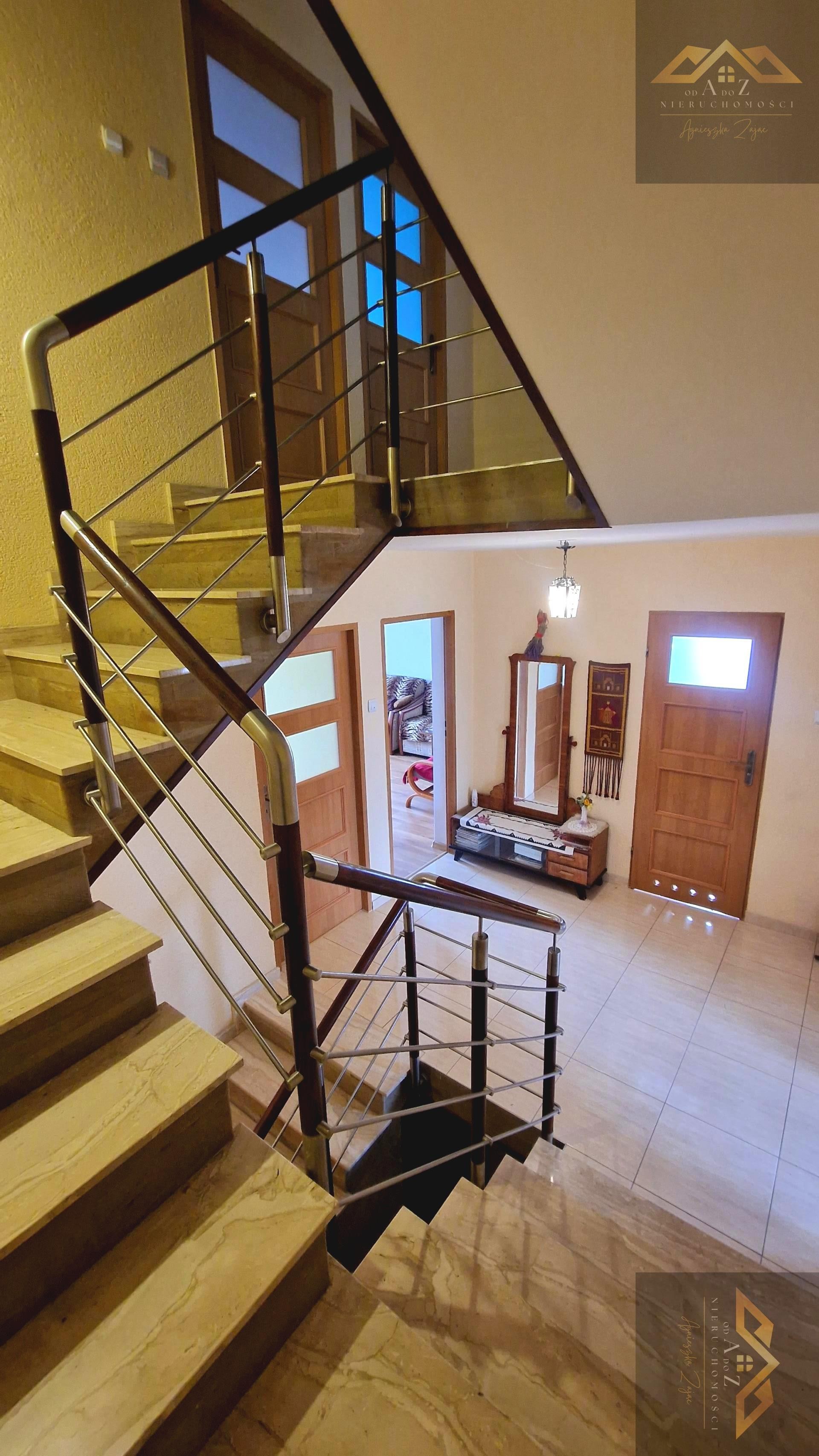 Dom posiada aż osiem przestronnych pokoi, idealnych zarówno dla dużej rodziny, jak i na cele inwestycyjne (np. pensjonat, biuro). Wnętrze uzupełnia łazienka z wanną, prysznicem oraz WC, dodatkowe oddzielne WC, a także duża, jasna kuchnia z miejscem na wspólne rodzinne posiłki. Wysoki standard wykończenia podkreślają marmurowe schody z balustradą ze stali nierdzewnej i elementami drewnianymi, a także kominek z systemem rozprowadzenia ciepła, który tworzy wyjątkowy klimat w chłodniejsze dni.