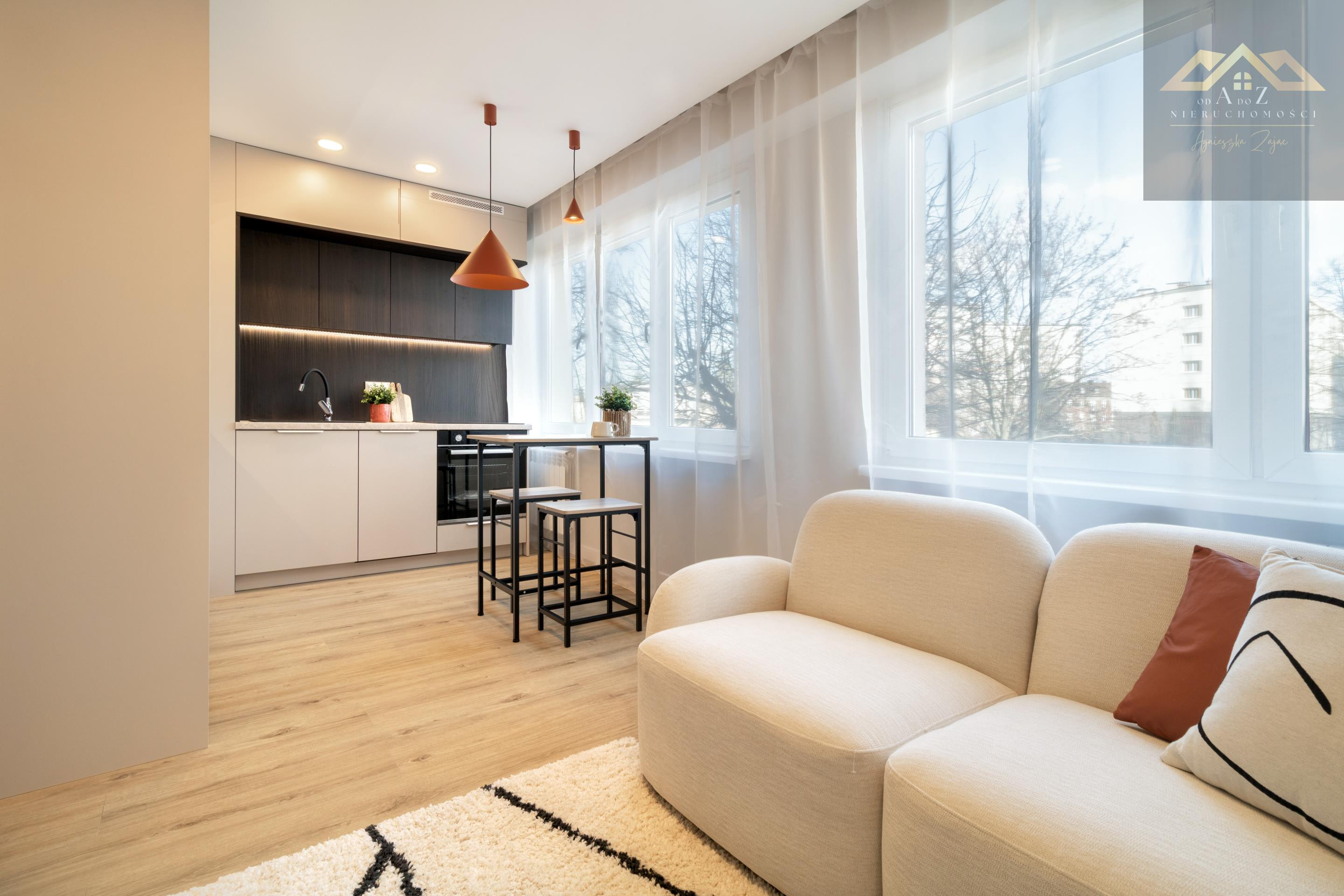 * jasny salon z aneksem kuchennym (ekspozycja wschodnia)