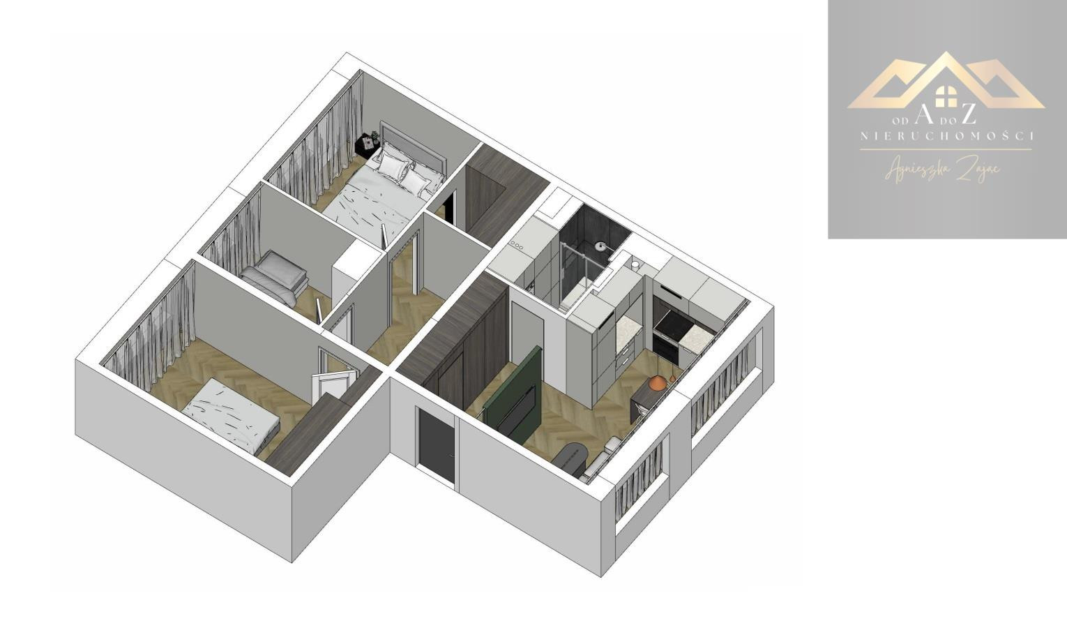 Funkcjonalny, czteropokojowy układ sprawdzi się zarówno dla rodziny, jak i pod inwestycję.